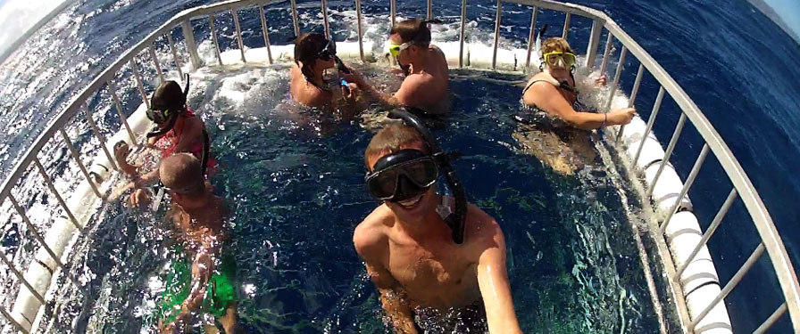 The shark diving tour boats go out approximately 3-4 miles and allow for participants to enter the cage while the sharks circle